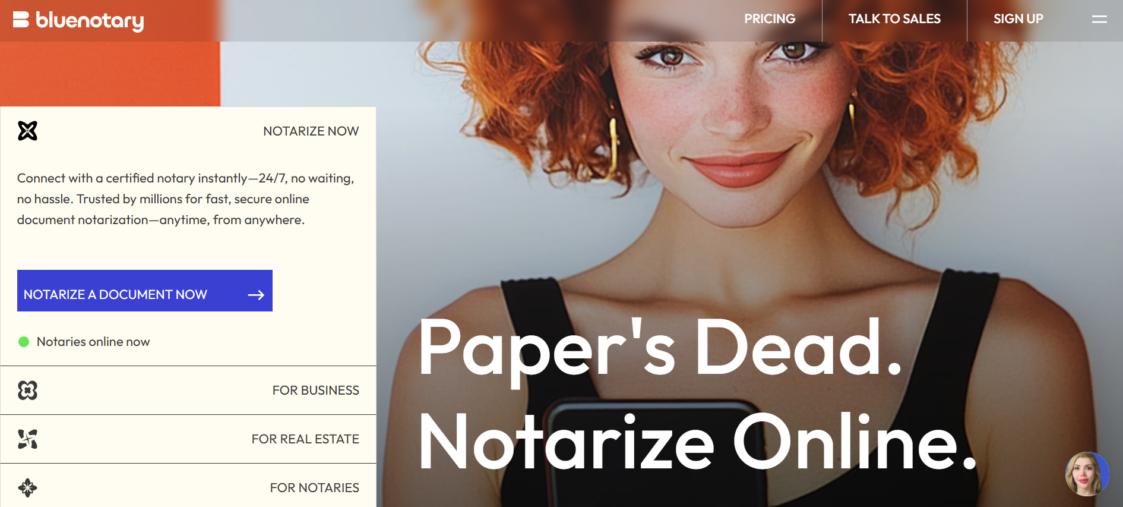 The platform is built for serious, high-volume work in government, legal, and financial sectors. It offers 24/7 notary access, strong API integration, and smart AI tools. What truly distinguishes it is its professional approach: instead of gig workers, OneNotary employs a highly trained and verified white-glove notary staff.